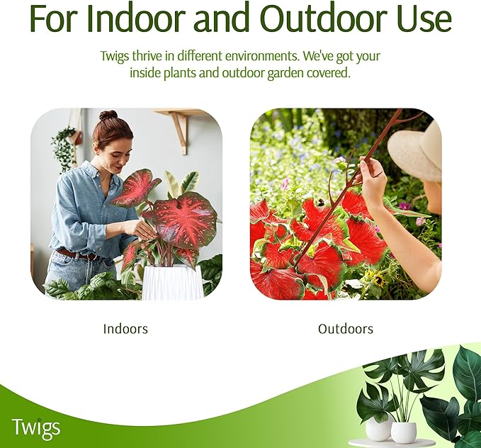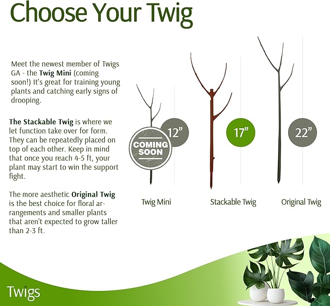 - ESSENTIAL PLANT ACCESSORIES: Twigs GA plant support stakes are a must-have for any plant lover. These stakes offer reliable support without sacrificing the aesthetic appeal of your living space. Note: Twigs are not meant to support large plants over 5 ft or stems greater than 3/4".