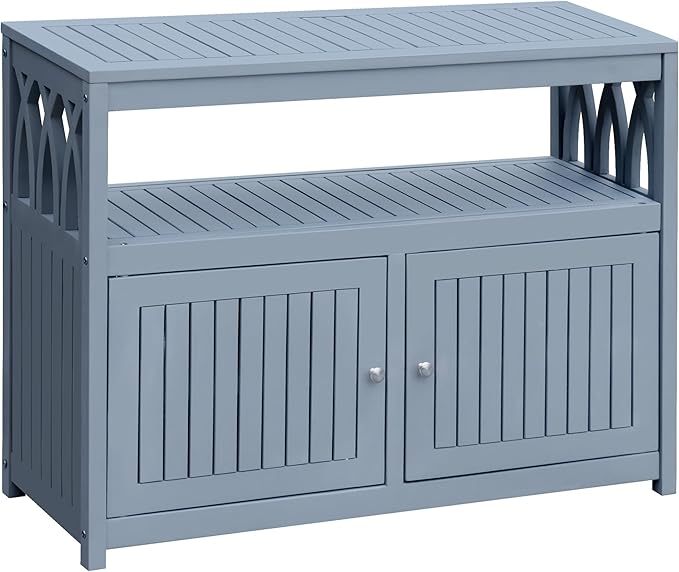 Flamaker Acacia Wood Cabinet with 2 Magnetic Doors - Weatherproof Outdoor Storage, Buffet, TV Stand, Bar, Potting Table (Grey)