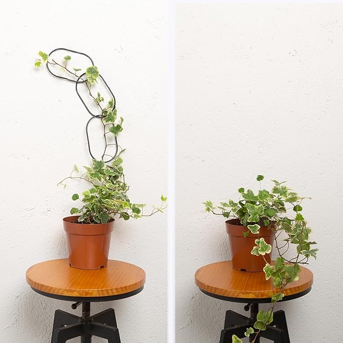 - - Premium Quality Plant Trellis: Our metal trellis features an oval shape with dimensions of 5.4in x 3.3in and comes with 17 oval iron rings, providing sturdy support for climbing plants like ivy, pothos, and vegetables.