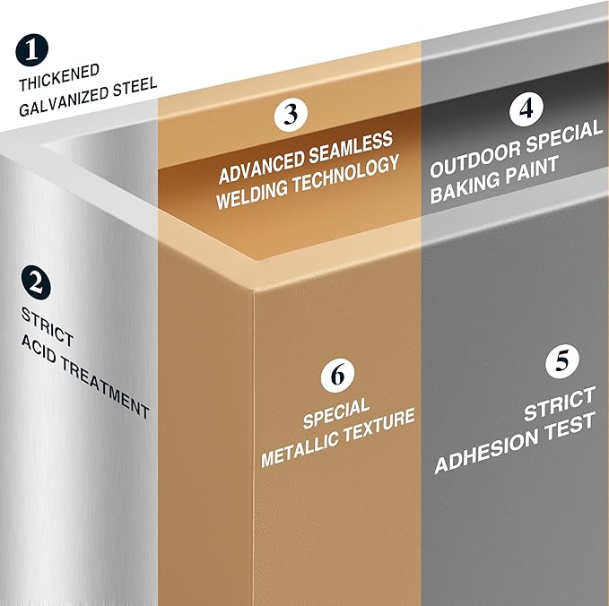 - 【Span Metal Planter】This tall planter box is made from a fully seam welded thick galvanized steel, and adopts outdoor special baking paint, giving the surface a premium metallic color and special texture through the advanced powder injection process.