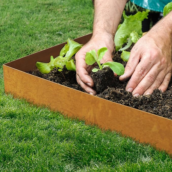- Unique Rust Look: KOL weather resistant steel edging has been pre-rusted; No need to wait, get a beautiful rusted patina right away; The natural rust finish designed specifically for lawns, pathways, firepits, and gardens; The rust also forms a protective coating that resist the corrosive effects of all types of weather