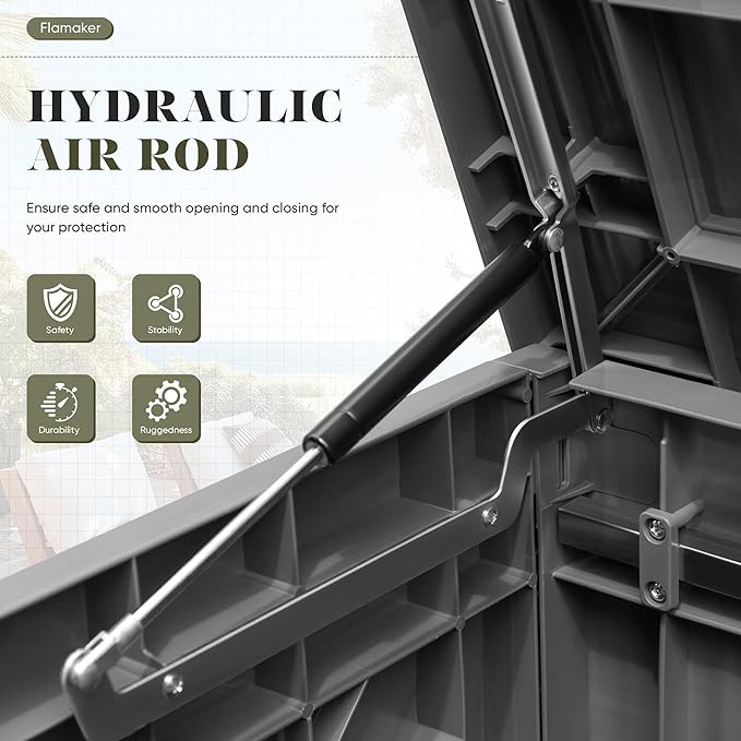 - [Safety Design] The storage box cover and the box are connected by hydraulic rods, which reduces the speed of opening and closing, ensuring the safety, and can be locked to ensure the safety of property