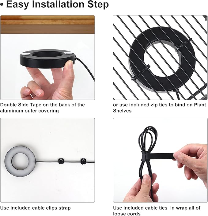 - Easy Installation: Aopeids cordless self adhesive grow light makes installation a breeze. The lightweight Aopeids 3 Halo LED is ideal for indoor use. A 78.88-inch power cord and included tape make DIY setup effortless