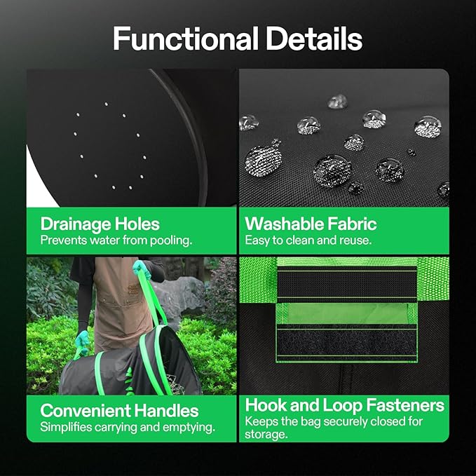 - Durable Build: Made from coated 600D Oxford fabric, this yard waste bag resists tearing, wear, and water; Reinforced with an internal metal spring structure, it stands upright securely