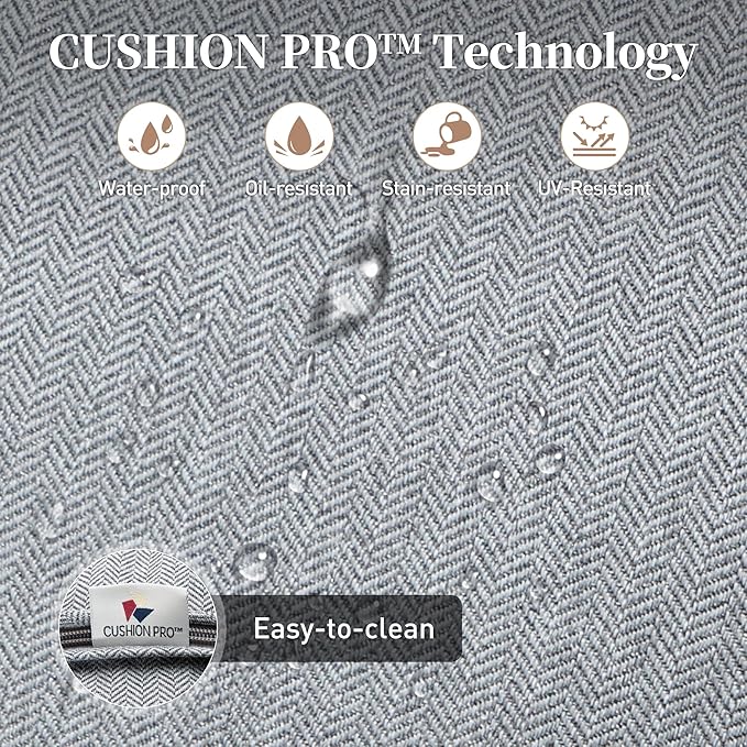 - ADVANCED CUSHION TECHNOLOGY: Experience the happiness of easy maintenance with the SUNSHINE VALLEY patio conversation set. The fabric of this patio furniture set is made with CUSHION PRO technology. It has excellent waterproof, oil-proof, and stain-resistant properties making the dirt easily wiped down. It can really meet your outdoor leisure needs.