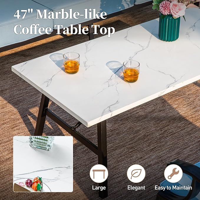 - UNIQUIE DETAILS: This outdoor furniture's diamond back design and marble-like metal table top make this outdoor furniture more unique and exquisite.