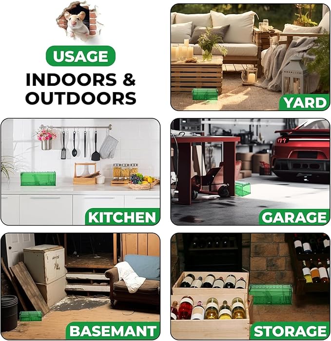 - Reusable: The rodent traps are reusable, making it super cost effective. After a catch, clean the traps with soap and water and it's ready to be used again. Cleaning Brush included!