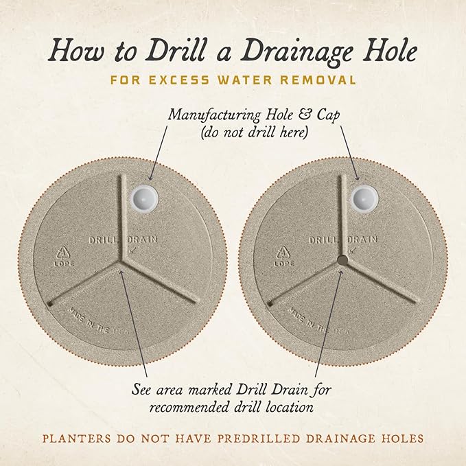 - Plant It All - The Santorini Bowl large outdoor planters provide ample space for diverse greenery, vibrant flowers, and abundant succulents to flourish. Dimensions: 21"x21"x7.5". Capacity: 15 Quarts. Includes drillable drainage holes.