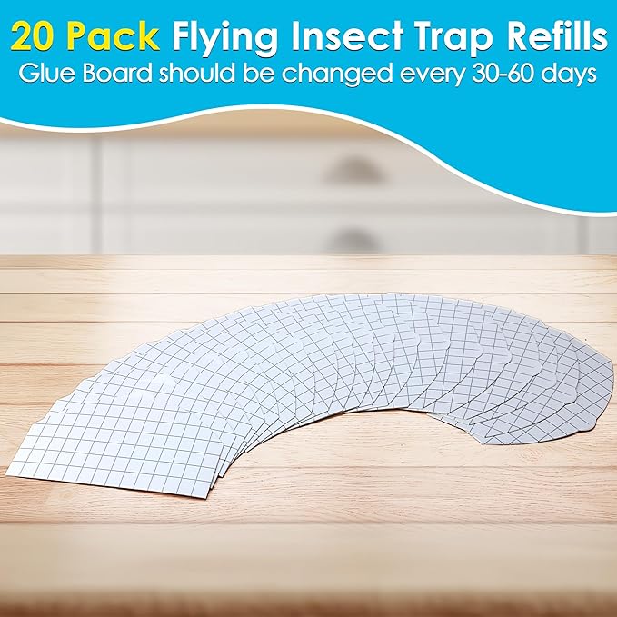 - Regular Change: Glue Board should be changed every 30-60 days and may need to be changed more often in high infestation areas; 20 pieces of sticky flying insect trap refill meet your use and replacement needs