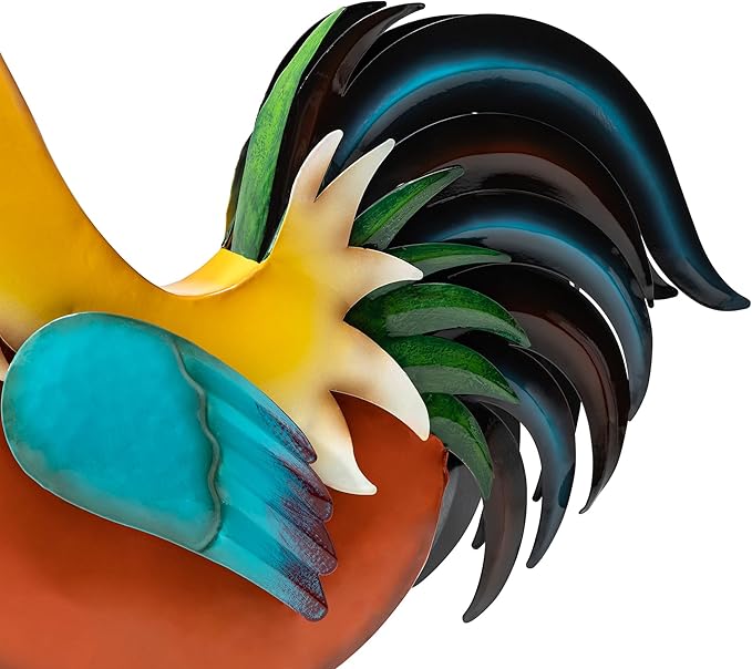 - Large Size: This rustic metal rooster measuring 21” H x 17.25” L x 6.25'' W. Simply assemble required, easy to set up and enjoy