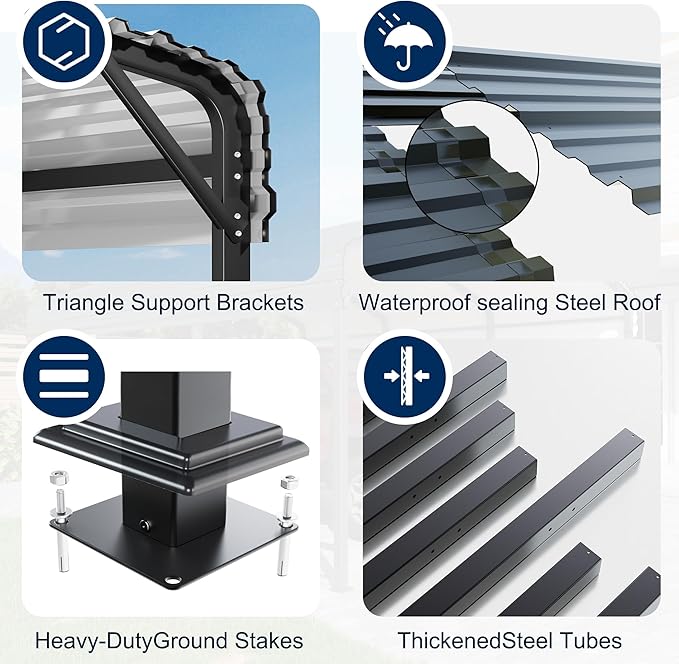 - [Security Commitment] Improvements to the carport include waterproof sealant strips along the roof and gentle, long-lasting rubber edges to minimize the risk of injury, underscoring the importance we place on your safety and the durability of the carport.