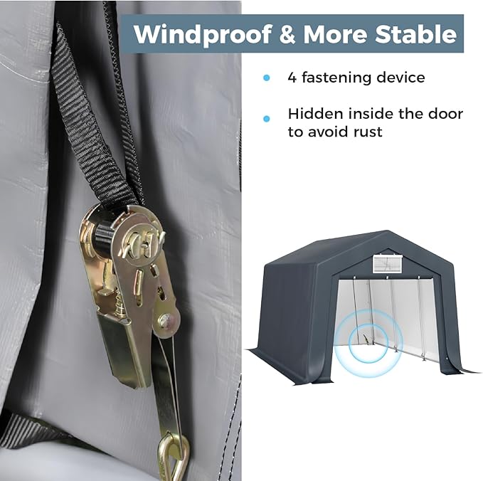 - 【Roll-up Ventilation Windows Design】 Our outdoor storage shed carport doors feature dual zippers and buckles for easy removal or roll-up. Equipped with a mesh window, they offer superior ventilation, promoting airflow and reducing moisture build-up.