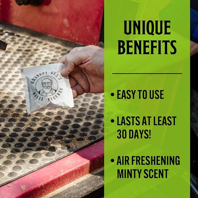- Natural Mouse Repellent: Keep mice out of your home, garage, car, truck, or RV with a time-release peppermint and cinnamon scent that creates a powerful, all-natural barrier