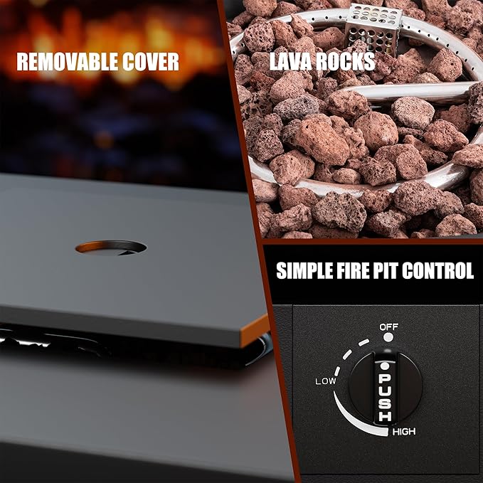 - 2 IN 1 OUTDOOR FIRE ABLE: Vongrasig gas fire table can be used in multiple ways. Remove the lid and light a fire, You can get a warm stove to light up the night. With the lid on, you can put drinks and food on and get a wonderful coffee table.