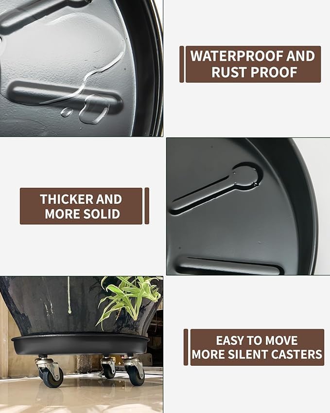 - 360° UNIVERSAL LOCKABLE CASTERS: Each plant roller features 5 360° universal casters, 2 of which are lockable. Made of solid rubber for superior load-bearing capacity and versatility across diverse terrains. Rolls silently to guarantee noiseless operation