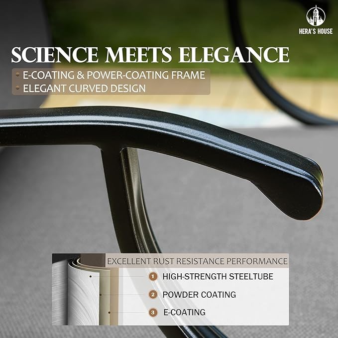 - 【E-COATING & POWDER-COATING TECHNIQUE】ALL the outdoor furniture set metal frame are processed by high-performance E-COATING and POWDER-COATING technique which provides extended protection against rust, scratches, rain, and UV harm. All weather resistant, anti-rust, easy to clean, no special care needed.