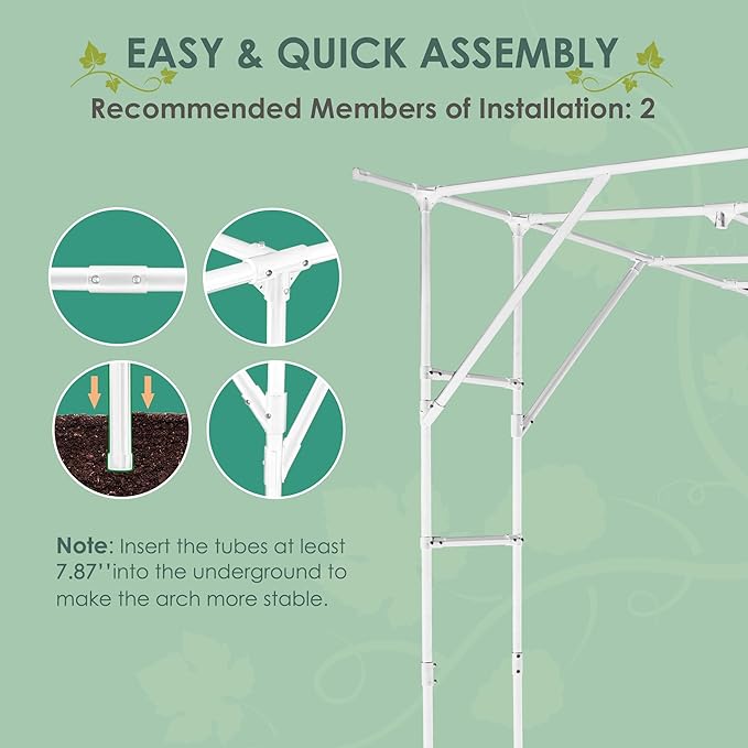 - Decorative and Functional -- The open design of the grape arch trellis provides an attractive archway for climbing plants to create a beautiful entry into your garden. Ideal for growing flowers, fruits, vegetables. The plant arch arbor also can provide you with shade. You can enjoy the beauty of your garden with your family inside.