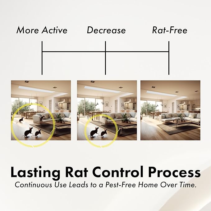 - 【Long-Lasting Rodent Deterrent】 Achieve a lasting solution with our device. Rats initially become more active, then steadily decrease, leading to a pest-free home over time.
