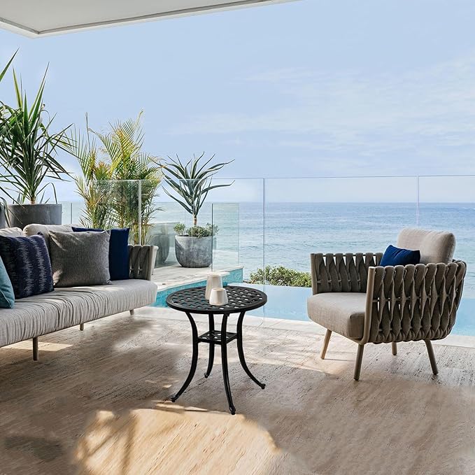 - High Quality: This side table is made of cast aluminum, which make it rustproof, weather-proof for outdoor. It can last for many years.