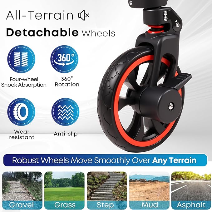 - [VIBRATION REDUCTION] All four wheels have a shock-absorption function, ensuring durability and resistance. The utility wagon with 10" back wheels and 8" front wheels it can smoothly climb stairs, drive steadily, not easily overturn