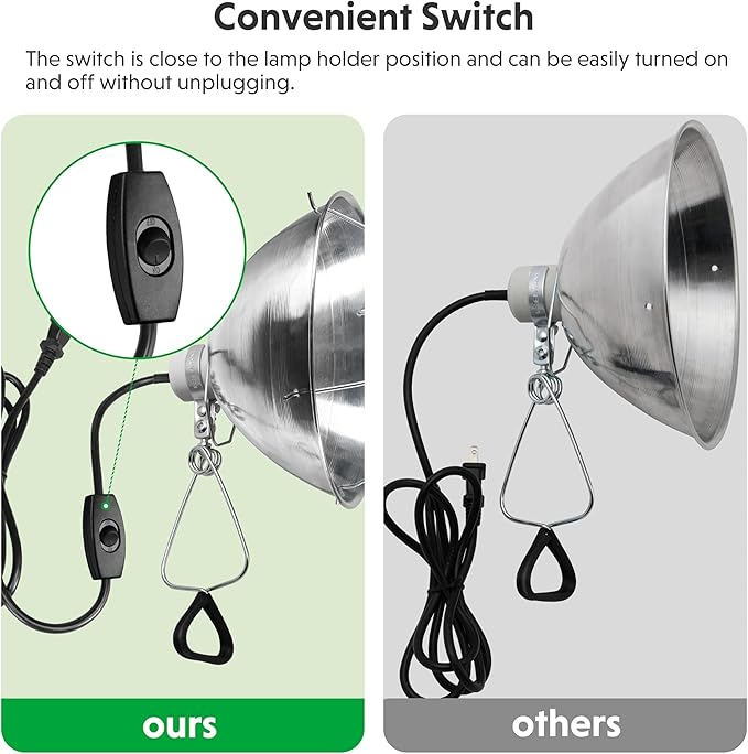 - Wide range of uses: It provides lighting for plant seedlings, garages, water tanks, workbenches, and laundry rooms. It can also function as a bedroom reading light, a work light in photography studios, and is compatible with ceramic heat lamps for pets.