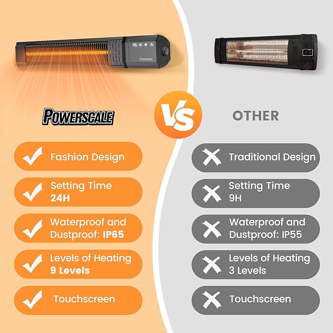 - STYLISH & EASY TO INSTALL: Designed with a modern aesthetic, the wall heaters for indoor is easy to install and perfect for both indoor and outdoor use. Patio heaters for outdoor use provides the ideal heating solution for a gazebo, patio, outdoor bar/restaurant, garage, balcony, and BBQ area