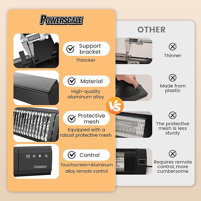 - HIGH HEATING POWER AND SPEED: Experience powerful heating with 1500W capacity. outdoor heater heats up instantly within 2.5 seconds,the infrared outdoor electric Space Heater providing warmth up to 10 feet. Perfect for quick relief from the cold, ensuring your comfort in no time