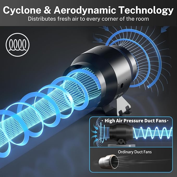 - 【Low Noise & Energy Efficient】: The grow tent fan ensures powerful performance at a low noise level of 32dB, so it won't disrupt your work or life. Compared to AC motors, the EC motor saves 50% on energy consumption, effectively extending its lifespan and providing true quiet and energy-efficient operation