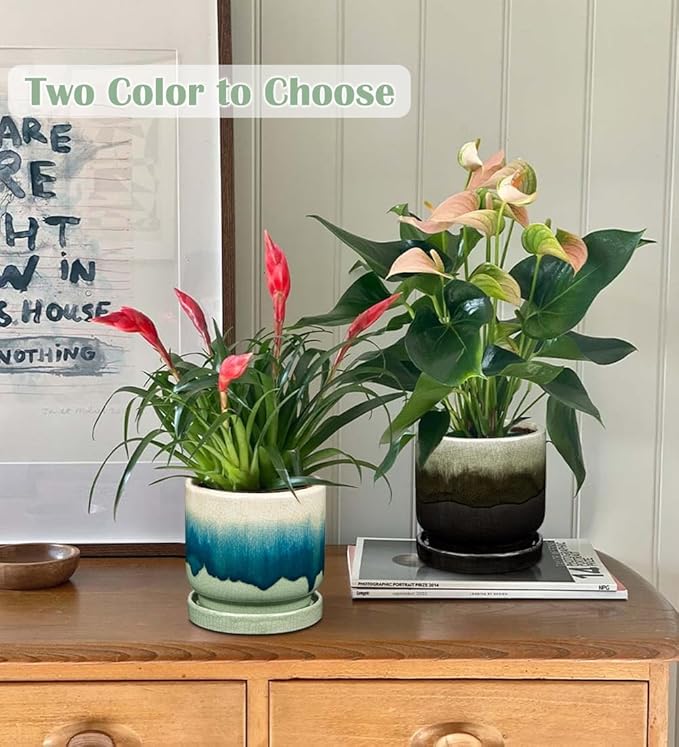 - Superb Quality - The pot for plants are made of premium clay material, fired at high temperatures, it is hard to be out of shape, fade or paint off. The smooth line from the opening to the bottom, that makes it is easy to clean. Features a unique hand applied reactive glaze, therefore no two are exactly alike. Each piece is unique and will would make a great gift for your loved one. Each indoor planter are wrapped with thick foam to avoid damage to the flower pot during transportation
