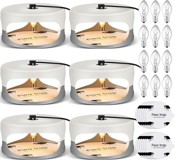 - Comprehensive Package Inclusion: this package includes 6 flea traps, 12 sticky discs, 12 bulbs for attracting them, and 6 electric wires for power, providing a convenient usage experience for you