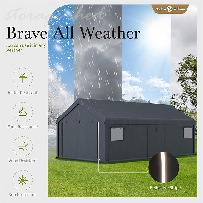 - High Quality Car Port: Unlike ordinary inexpensive storage sheds, our storage shed frame is made entirely of thickened galvanized steel pipes, which are sturdy and stable, not easy to rust, and have a longer service life. The cover is made of 100% PE material, UPF 50+can block 99% of ultraviolet rays, and is 100% water repellent and tear resistant