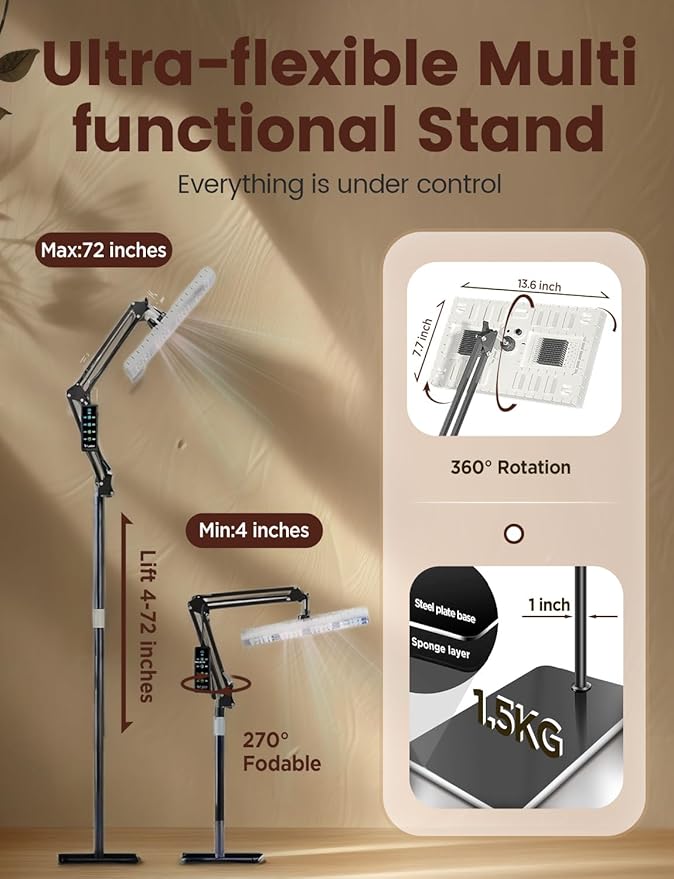 - 【Flexible and Adjustable】: Whether you prefer a hanging setup or freestanding support, our light adapts effortlessly. The robust 1-inch diameter steel support poles are adjustable from 4 to 72 inches in height and allow for 270° folding and 360° rotation. This unparalleled versatility accommodates various plant growth scenarios, from seedlings to mature plants, making it ideal for grow lights for seed starting and plant grow lights indoor.
