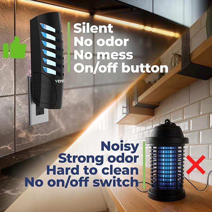 - ADVANCED FLY CONTROL WITH NO MESS OR ODOR- Keep your home safe and odor-free with this plug-in bug light trap for indoor use. This powerful device is designed to catch a diverse spectrum of insects, fruit flies, bugs and gnats without any mess or smell. Flies are irresistibly drawn to this cutting-edge device, thanks to its radiant UV light. Once lured inside, they find themselves ensnared by the formidable adhesive plate concealed within.