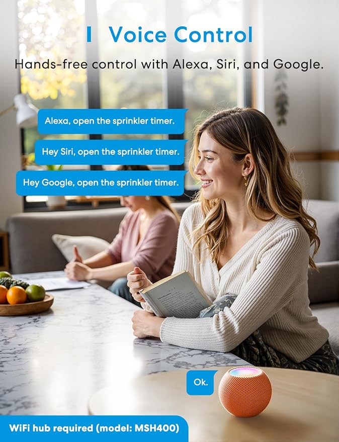 - Multi-Platform Smart Integration: This wifi water timer works seamlessly with Apple HomeKit, Alexa, and Google Assistant. Set it up once, and enjoy the convenience of voice control and remote management, whether you're home or on the go!