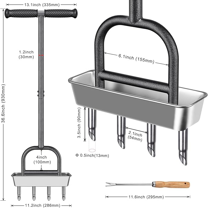 - 12ββ Weeding Tool: The lawn aerator comes with a 12ββ hand tool that can be used to clean the aerator. It is also useful for transplanting seedlings and weeding, making it very convenient.
