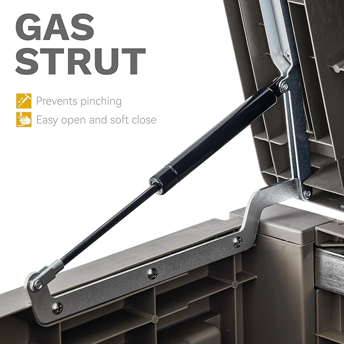 - Hydraulic Piston: The outdoor storage deck box features a hydraulic piston that can gently lift and close the top with minimal force to to prevent finger injuries; There are no user age restrictions