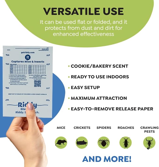 - HOME & PET SAFE: Our Riddy glue boards are designed to keep your family protected from unwanted critters in your home. They are fast-acting and low-toxicity. Vegetable oil can be used to dissolve the glue if needed.