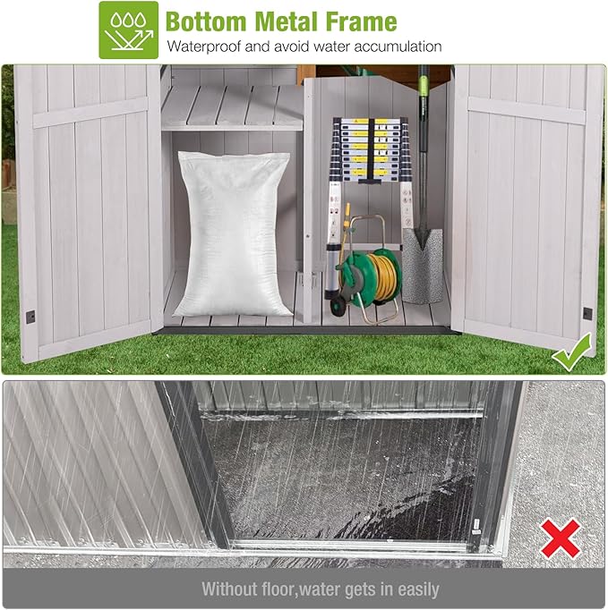 - [ Excellent Design ]: The lockable shed door allows you to easily store items and improve security. The adjustable shelves can be easily removed and the shelf height can be adjusted as needed.