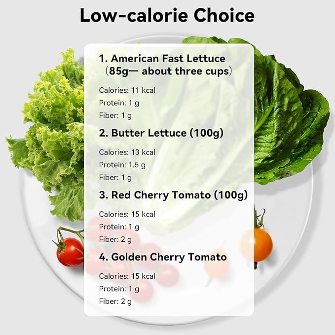 - Low-Calorie Delights: inbloom hydroponic salad herb seed pod kit includes American fast lettuce, butter lettuce, red cherry tomato, and golden cherry tomato. More seeds, more combinations. Growing your own low-calorie food allowing you to enjoy salads bursting with flavor