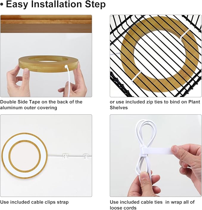 - Easy Installation: Aopeids cordless self adhesive grow light makes installation a breeze. The lightweight Aopeids 2 Halo LED is ideal for indoor use. A 118-inch power cord and included tape make DIY setup effortless