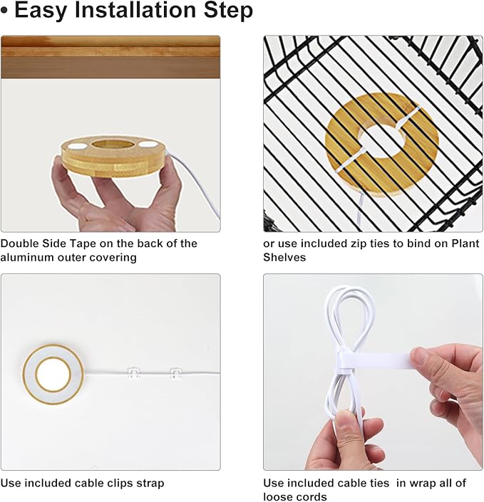 - Easy Installation: Aopeids cordless self adhesive grow light makes installation a breeze. The lightweight Aopeids 2 Halo LED is ideal for indoor use. A 78.88-inch power cord and included tape make DIY setup effortless