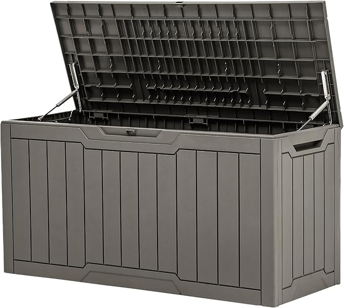 - Solid Build: Crafted from sturdy resin, this waterproof and fade-resistant deck box features a double-wall design to withstand all weather conditions, from intense sun and heavy rain to snow and wind