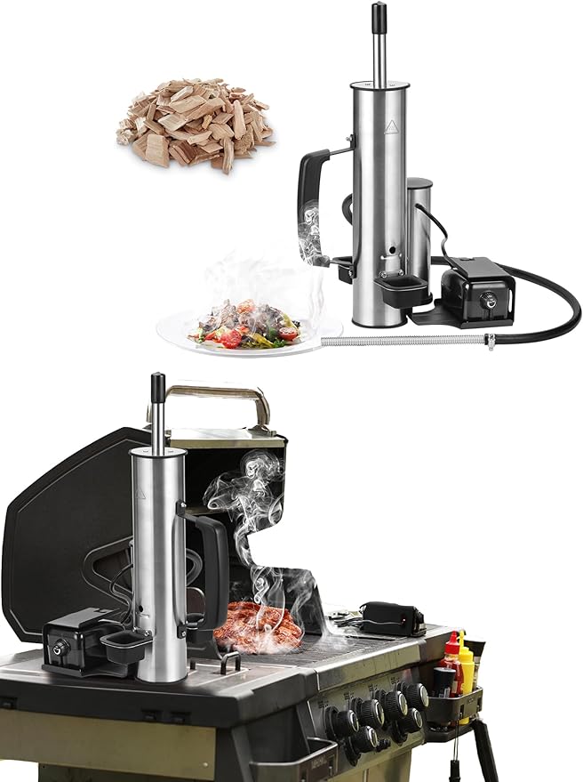 - Portable Smoke Generator - Transform any dish with the robust taste of wood-fired barbecue. Our portable smoke generator uses natural hardwood pellets or wood chunks, allowing you to craft the smoke flavor with your choice of cherry, hickory, mesquite, or apple blends. Perfect for tailoring unique flavors for any gathering or traditional barbecue.