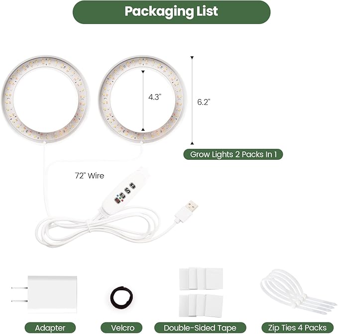 - Easy Installation with total Mounting Kits for Plant Shelf or Under Cabinet - Mosthink grow light set comes with 6 double-sided tapes and 4 ties. Fits for various surfaces . The power cord is 72 inches long for easy using in office,home,plant shelves or indoor greenhouse