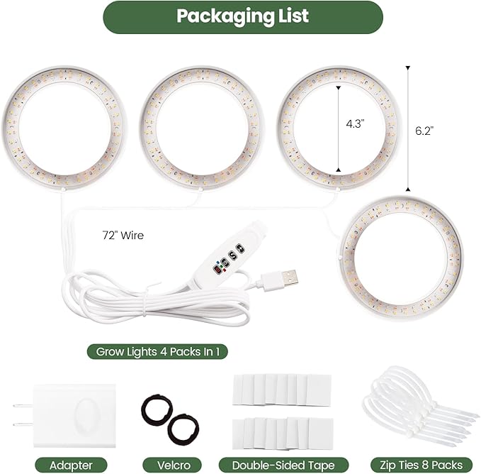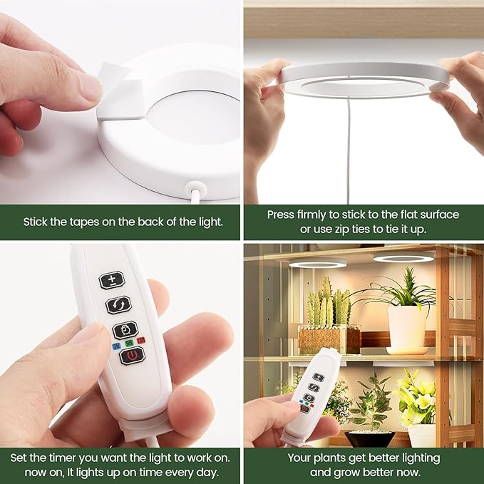 - Easy Installation with total Mounting Kits for Plant Shelf or Under Cabinet - Mosthink grow light set comes with 12 double-sided tapes and 8 ties. Fits for various surfaces . The power cord is 72 inches long for easy using in office,home,plant shelves or indoor greenhouse