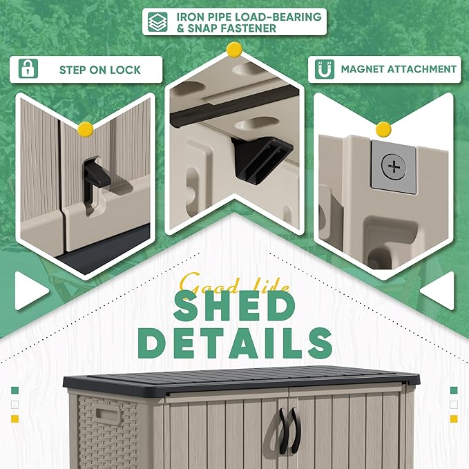 - Safe Storage: Our storage shed is double-protected by foot switch and top magnet, which can make the door close safely and firmly, and the foot switch with bottom pin can avoid squatting, which is convenient and labor-saving.