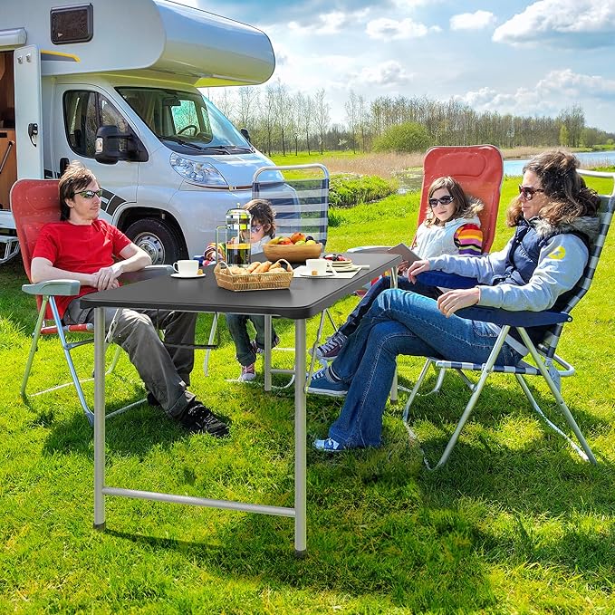 - Ready to Use: Enjoy no assembly convenience with our black folding table; Just unfold the table and secure the legs in place; Designed for user-friendliness, even elderly individuals can easily assemble it, ensuring a smooth experience