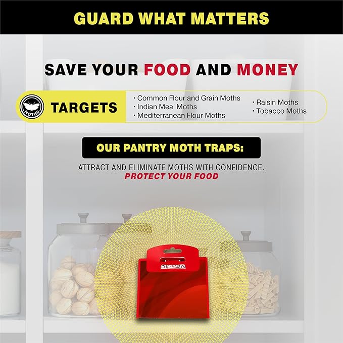 - ELIMINATE MOTH INFESTATION SAFELY: Keep your kitchen pantry, storage cabinet and closet moth-free and safe by placing Catchmaster Pantry Moth Traps near food storage areas. These sturdy, narrow profile sticky traps are designed to attract and eliminate moths quickly and easily for your peace of mind.