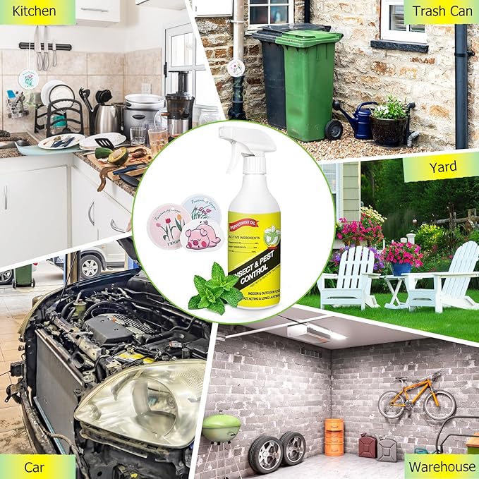 - Roach spray indoor peppermint spray: peppermint oil spray for mice infestation are a safe, natural solution to prevent pest invasion and peppermint spray for spiders are effective both indoors and outdoors. Keeps away most types of pests from bedrooms, basements, attics, living rooms, kitchens, garden