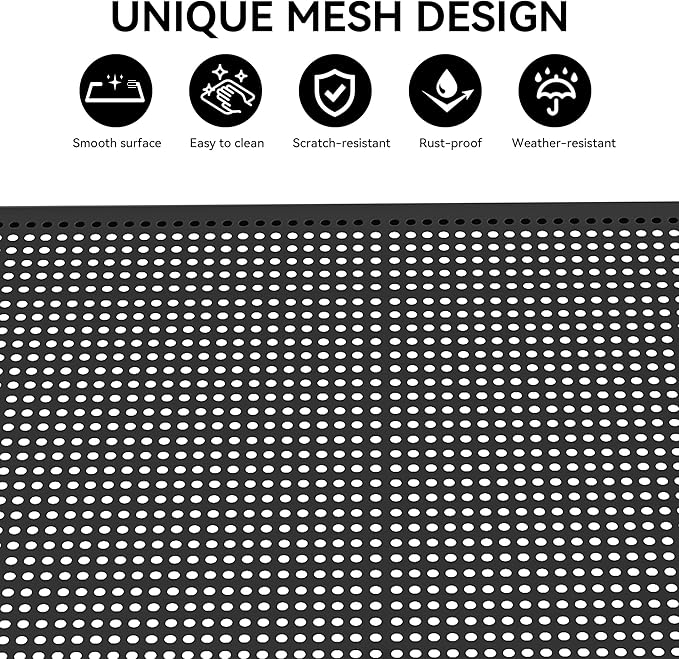 - Enhanced Outdoor Experience: The picnic table and bench set is designed with anchor slots on the legs for theft deterrence and stability in tough conditions; The smooth mesh design dries 200% faster, provides effective heat dissipation, and avoids pinching skin like other mesh products; Rounded edges enhance safety by preventing accidental bumps